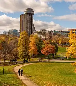 Hôtel Le Concorde Québec is a skyscraper hotel in Quebec City, Quebec, Canada. It contains 405 rooms over 26 floors. Le Concorde is known for its revolving restaurant, Ciel! (formerly L'Astral), which is situated on the top floor of the hotel and offers a 360-degree view of Quebec City and the Saint Lawrence River. The hotel is located in the historic restaurant district La Grande Allée and behind is the historic national park The Plains of Abraham (French: Les plaines d'Abraham) and The Battlefields Park (French: Parc des Champs-de-Bataille).