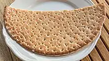 Hönökaka (English: Hönö bread or Hönö cake) is a type of Swedish flat soft white pricked bread. It is named after the island town Hönö in Gothenburg's northern archipelago, and was originally baked by the people living on said archipelago's different islands. The bread is baked in round flat pieces, but is normally sold as half-circles. In 2014, industrially made hönökaka was produced by two manufactures, Åkes Äkta Hönökakor and Pågen.[1]