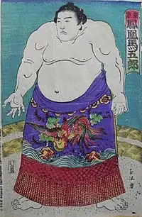 His real name was Miyokawa Toranosuke (三代川 寅之助) and was known for his large body and strength since he was a boy.[1] He joined Miyagino stable because the then head coach (Miyagino Umagoro) was from Makuhari, Chiba District and made his professional debut in May 1886 under the shikona Kikutayama (菊田山). It is thought that his first shikona was chosen to pay homage to his hometown shrine of Kikuta.[1] He was later given the shikona Araumi (荒海) in May 1887 before changing it to Ōtori () in January 1891. Upon promotion to juryō, in June 1892, he was given the shikona Hōō (鳳凰).