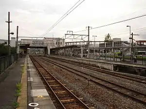 The station has two opposed side platforms with an elevated station building. The station is staffed.