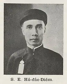 Hồ Đắc Điềm (1899–1985) was the governor of Ha Dong, the area surrounding Hanoi.[1] He was also a successful lawyer and was the only non-French professor at the University of Indochina.
