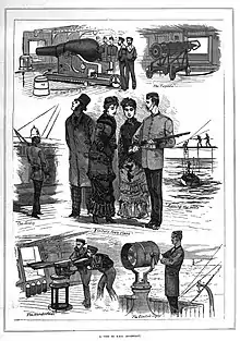 She was recommissioned in 1880 and was commanded by Captain Lord Walter Kerr from 5 February to 11 March. During this time, Inconstant served as the flagship of Vice-Admiral Seymour of the Mediterranean Fleet[12] as she ferried replacement crews to that fleet.[1] From August 1880 to October 1882, Inconstant was assigned to the reconstituted Detached Squadron, this time as the flagship, first of Rear-Admiral Richard Meade, 4th Earl of Clanwilliam until he was got sick in Hong Kong,[15] and then from 6 December 1881 to 17 October 1882 of Rear-Admiral Sir Francis Sullivan.[16] Inconstant's captain at this time was Captain Charles Penrose-Fitzgerald. The Detached Squadron left Spithead on 17 October 1880 to circumnavigate the world and returned two years later.[13] It is claimed that on 11 July 1881 (or 11 June 1881[17]), Prince George of Wales (later King George V of the United Kingdom) sighted a phantom ship whilst aboard Inconstant between Melbourne and Sydney. Two other ships, Tourmaline and Cleopatra, also reported seeing the phantom ship.[18] Just after arriving in the Falkland Islands, the squadron was ordered to Simonstown, South Africa, for possible service in the First Boer War of 1880–81, but hostilities had already ended by the time that it arrived. On the return voyage, the frigate caught fire; it was stopped by flooding all of the after compartments. Shortly afterward, the squadron was diverted to Egypt after the start of the Anglo-Egyptian War of 1882; they arrived after the Bombardment of Alexandria on 11 July and some of Inconstant's crew were landed to participate in operations ashore.[19]