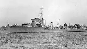Whitley commissioned at Portsmouth on 14 December 1928 for service with the 5th Destroyer Flotilla in the Atlantic Ocean.[5] She recommissioned at Chatham on 8 May 1929 for service with the 1st Destroyer Flotilla in the Mediterranean Sea.[6] She was reduced to reserve at the Nore on 30 June 1932,[7] and paid into maintenance reserve at Rosyth on 28 October 1933.[8]