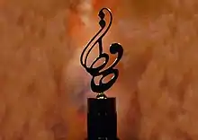 Ali Moallem, Picture World founder and previous editor, established the awards in mid-'90s when Iranian cinema was under heavy governmental dominance. Watching Iranian cinema developing presence and success in international film festivals, he thought over creating an independent film award in order to honor filmmakers without political considerations and also to make a connection between film stars and the people.[5] First ceremony was held in 1997 under the title "Hafez" after Iranian great poet Khwāja Shams-ud-Dīn Muḥammad Ḥāfeẓ-e Shīrāzi.[6] The award is a typographical statue resembling Persian written form of the word "Hafez". as of 2016, sixteen Hafez Awards ceremonies has been held through the years.[7]
