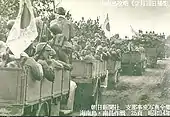 Imperial Japanese Army soldiers in trucks during the invasion of Hainan (Asahi Shinbun news photo)