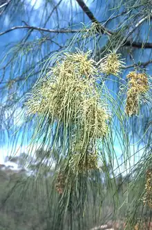 Hakea fraseri, is a species of shrub or small tree commonly known as the corkwood oak,[3] is a shrub in the family Proteaceae and is endemic to northern New South Wales. It has furrowed bark, pendulous foliage and creamy-white flowers in spring.