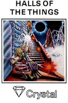 Halls of the Things is a video game developed by Design Design for the ZX Spectrum and released by Crystal Computing in 1983. It was ported to the Amstrad CPC and Commodore 64. The player travels through seven floors of a tower, searching for seven rings, with each floor being a complex maze of corridors and rooms. Once the player has the rings they must then find the magical key hidden in the dungeon, which opens the drawbridge allowing the player to escape. To hinder the player's progress they are attacked by "things," but the player is armed with a sword, arrows, fireballs and lightning to aid you in the quest.