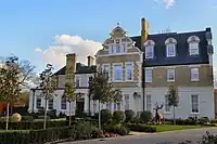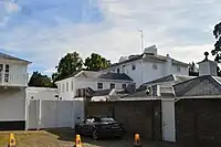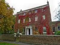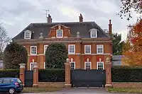 ![]() | Park Gate House, Ham Gate Avenue | 1768 with later alterations | II | It was the home of Lord Charles Beresford at the end of the 19th century[26] and later Laurence Carr.[27] The manor house then belonged to the Vestry family until the 1980s when it was purchased by Khalifa bin Zayed Al Nahyan (1948-2022), ruler of Abu Dhabi.[28] Despite local protests it was extended with a high wall surrounding it.[29] The neighbouring Grade II listed lodge, just inside Richmond Park, dates from 1742.[30] |