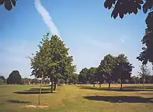 Ham Common is an area of common land in Ham, London. It is a conservation area in, and managed by, the London Borough of Richmond upon Thames.[2] It comprises 48.69 hectares (120.3 acres), the second largest area of common land in the borough, 2 acres (0.81 ha) smaller than Barnes Common.[1] It is divided into two distinct habitats, grassland and woodland, separated by the A307, Upper Ham Road. It is an area of ecological, historical and recreational interest, designated a Local Nature Reserve.[3][4]