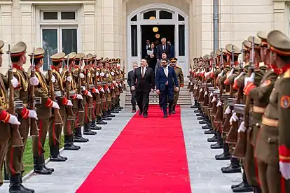 During his tenure as the Deputy Chief of Staff to President Ghani, where he Coordinated and oversaw the office of the spokesperson, correspondence and diplomatic communications, protocol and petitions, as well as the Presidential Secretariat.[9] While at the Presidential Palace, he was responsible for drafting bilateral and multilateral agreements, coordinating with counterparts from the government, and organizing official presidential visits to many other nations.[9] Mohib led Afghanistan's presidential negotiating team for several intergovernmental cooperation agreements and the development of its "Realizing Self-Reliance'" reform strategy.[10]