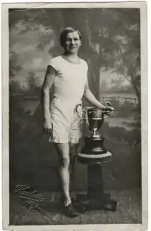 Juho Pietari "Hannes" Kolehmainen (Finnish: [ˈhɑnːes ˈkolehmɑi̯nen] ⓘ; 9 December 1889 – 11 January 1966) was a Finnish four-time Olympic Gold medalist and a world record holder in middle- and long-distance running.[1] He was the first in a generation of great Finnish long-distance runners, often named the "Flying Finns". Kolehmainen competed for a number of years in the United States, wearing the Winged Fist of the Irish American Athletic Club.[2] He also enlisted in the 14th Regiment of the National Guard of New York,[2] and became a U.S. citizen in 1921.[3]