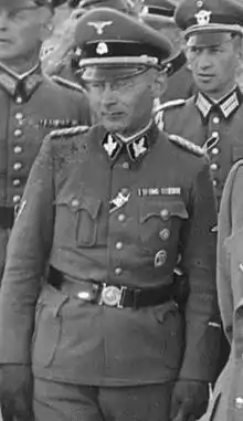 On the outbreak of the Second World War, Haltermann joined the German Army as a Leutnant in the reserves. He fought in the Polish campaign, was promoted to Oberleutnant in January 1940 and participated in the Battle of France. Following the invasion of Yugoslavia, he served with the army command in Belgrade until June 1941, and then participated in the German invasion of the Soviet Union. He was returned to SS and police duties at the request of Reichsführer-SS Heinrich Himmler in August 1941, and was appointed the first SS and Police Leader (SSPF) of Kiev on 1 October 1941.[3] During his tenure in Kiev, Einsatzgruppe C was active in perpetrating mass murder of Jews and other Ukrainians. Haltermann was subsequently named as a war criminal by a Soviet special commission set up to investigate German crimes and atrocities in Kiev.[4]