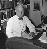 Reese was widely sought-after as a consultant in neurology at UW, especially after the departure of Dr. Bleckwenn from Madison for health reasons in 1954. Hans was devoted to both his colleagues and patients, and that feeling was warmly reciprocated.[20] In 1955, a new dean, Dr. John Zimmerman Bowers, was appointed at the UW medical school. His principal interest became the systematic replacement of existing medical school department chairpersons with external appointees from other institutions, in the belief that professional "inbreeding" at the school had been detrimental to its academic growth. Despite Dr. Reese's accomplishments and reputation, including past presidency of the American Neurological Association[21] he was summarily ousted by Bowers as chairman of Neuropsychiatry in 1956.[22] Reese had a myocardial infarct (heart attack) shortly after being dismissed. Nonetheless, following his recovery, he remained on the UW faculty and continued his academic contributions until the end of his life.[23][24]