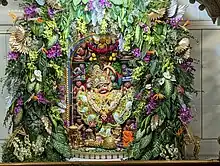 This temple is among the more prominent ones in the Sanatan dharma. The idol of Hanuman was installed by Gopalanand Swami (one of the primary disciple of Swaminarayan). According to author Raymond Williams, it is reported that when Gopalanand Swami installed the idol of Hanuman, he touched it with a rod and the idol came alive and moved. This story has become a charter for the healing ritual performed at this temple.[1] The idol of Hanuman here is a stout figure with a handlebar moustache, with Shani Dev in his feminine form under his foot and baring his teeth, standing among sculpted foliage full of fruit bearing monkey attendants.[2] The overall temple renovations were done many times by Hindu societies and organizations, later were considered under Swaminarayan Sampraday. In 1899, Kothari Gordhandas of Vadtal appointed Gopalanand Swami to manage the affairs of the temple; during his tenure, Shastri Yagnapurushdas renovated the site, built the adjacent bungalow, and acquired more land for the complex to bring it to its current state.[3] Govardhandas then appointed a new mahant of the temple of Sarangpur. Since, then the Vadtal Gadi has constructed additional improvements and buildings to the temple. Hariprakash Swami is an incumbent trustee.