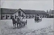 Horse-drawn carriages in the central courtyard of the Haras National d'Hennebont (c. 1931).