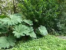 Specimen of Gunnera manicata in the stud farm grounds, near the lion's head fountain.