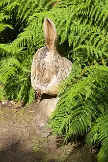 The National Trust wooded garden contains over 70 varieties of rhododendron, plus azaleas, hollies, and hostas. At its centre is a walled garden containing a pergola and wire sculptures. A permissive path leads from the garden to the ridge of Alderley Edge. The garden is open to the public at advertised times; there is an admission charge.[2]