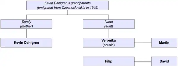 Dahlgren and Veronika Haroková had the same grandparents, who emigrated from Czechoslovakia following the 1948 communist coup d'état.[4] During their flight, they left their 6-year-old daughter Ivana, Veronika's mother, behind. The initial plan to get her out of the country following their escape failed, and it wasn't until 20 years later that they could meet again. This is when Ivana first met her sister Sandy, Dahlgren's mother, who had been born in the United States. Veronika's and Sandy's families were in contact and started visiting each other after the fall of communism in Czechoslovakia in 1989.[27]