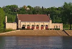 The Harriet Island Pavilion, also known as the Clarence W. Wigington Pavilion, is a park pavilion on Harriet Island just across the Mississippi River from downtown Saint Paul, Minnesota, United States. It was designed by Clarence W. Wigington, the nation's first black municipal architect, and renamed for Wigington after a 2000 restoration.[2] Harriet island was named for Harriet Bishop, a Baptist school teacher from Vermont.[3] She arrived in Saint Paul in 1847, was involved in the temperance movement, and opened the first school in the frontier city, teaching children of diverse ethnic, racial, and religious backgrounds.[4][5][6]
