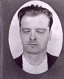 Pierpont's troubles with the police began after an accident in the summer of 1921, in which he received a severe head injury.[7] His demeanor was changed after the accident, and Pierpont complained of eye problems, dizziness and headaches.[7] Pierpont displayed bouts of sleeplessness and mania for firearms.[7] He stood over six feet tall, with light brown hair and blue eyes.[9] The second and third toes of his feet were grown together.[9]