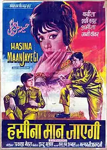 Hasina Maan Jayegi (lit.'The Beauty Will Agree') is a 1968 Hindi film directed by Prakash Mehra. The film stars Shashi Kapoor, Babita, Ameeta, Yunus Parvez and Johnny Walker. The film's music, composed by Kalyanji Anandji, has songs which are quite memorable, with the melodious Rafi-Lata duet "Bekhudi Mein Sanam" being the most popular of them all. The film stood 9th in Box office collection for the year 1968. Shooting of the film started with the song "O Dilbar Janiye" at the now defunct Roop Tara studio.