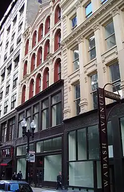 The Haskell-Barker-Atwater Buildings are a trio of buildings located in the Loop community area of Chicago that were together declared a Chicago Landmark in 1996. The buildings, constructed between 1875 and 1877, represent some of the last remaining pre-skyscraper architecture in the East Loop.[1] The bottom two floors of the Haskell building's facade were completely remodeled and spanned with decorative ironwork in 1896 by Louis Sullivan.[2]