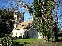 The parish church, dedicated to St Edmund since the 15th century, was probably founded prior to the Norman Conquest. The present building is small and comprises a chancel, nave, and west tower. It has been largely unchanged since its construction in the 12th century, other than the addition of the three-storey tower in the 15th century.[5] The church is grade I listed.[8]