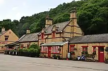 The station has a main building which houses a booking hall and waiting room. There is also a toilet block and plenty of outside seating. The station has a footbridge and a second platform, however these are currently not in use. Haverthwaite also is the location of the engine sheds and workshops.[1]