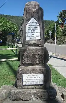 The Hawkesbury River was given its present name by Governor Phillip in June 1789, after Charles Jenkinson, 1st Earl of Liverpool, who at that time was titled Baron Hawkesbury, after the Cotswolds village of Hawkesbury Upton in England, where the Jenkinsons still live.[8] An obelisk was unveiled in 1939 at Brooklyn to commemorate the naming. In 1794, 22 families were granted land at Bardenarang, now known as Pitt Town Bottoms, near Windsor. In that same year, confrontations between Aboriginal people and settlers broke out.[20][21]