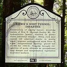 3. 1 2 "Hawk's Nest Tunnel Disaster". West Virginia Department of Culture and History. Retrieved 2008-11-25.