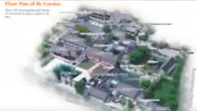 The garden comprises three parts (the west and east gardens, the residential area and courtyard and the mountain villa) which are arranged in a chain. With both Chinese and Western features, the garden can be used as both a residence and a scenic spot. Its designer endeavored to create an ideal residence; their efforts are included in the book, The Wonders of Yangzhou City. He Garden is recognized as "the first celebrated garden in the city after the Xianfeng and Tongzhi emperors".[2]