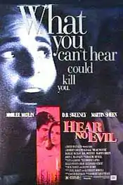 Hear No Evil is a 1993 American thriller film directed by Robert Greenwald, starring Marlee Matlin, D. B. Sweeney and Martin Sheen. It was released by 20th Century Fox on March 26, 1993. Matlin and Sheen would later co-star on the television series The West Wing.