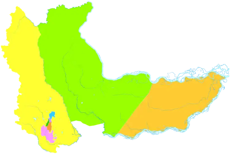 The region also faces Russia's Jewish Autonomous Oblast across the Amur River with an international border of 235 kilometres (146 mi). Lesser Khingan Mountains crosses the city. The total administrative area of Hegang is 14,648 square kilometres (5,656 sq mi). Amur river and Songhua river are the main rivers in Hegang.