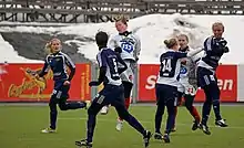 ![]() KMF's Heini Mäkelä (6) heads the ball. KMF – Åland United, 9 April 2006 at Kuopio Football Stadium. | |||
