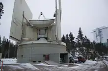 The Submillimeter Telescope (SMT), formerly known as the Heinrich Hertz Submillimeter Telescope, is a submillimeter wavelength radio telescope located on Mount Graham, Arizona, US. It is a 10-meter-wide parabolic dish inside a building to protect it from bad weather. The building front doors and roof are opened when the telescope is in use. The telescope's construction was finished in 1993. Along with the 12 Meter Telescope on Kitt Peak, this telescope is maintained by the Arizona Radio Observatory, a division of Steward Observatory at the University of Arizona.