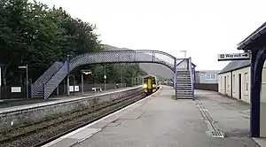 Both platforms have waiting areas and benches, whilst platform 2 also has a help point. Bike racks and a car park are adjacent to platform 2. There is step free access to platform 2 only; platform 1 can only be accessed via the footbridge.[11]