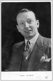Henri Alibert (December 3, 1889 – January 23, 1951) was a French singer and film actor. He was sometimes credited simply as Alibert. Along with Vincent Scotto he was the driving force behind the Marseille operetta scene.[1] He starred in several films based on his own stage operettas.[2]