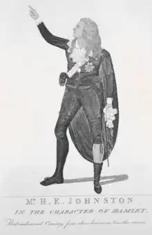 Johnston's first appearance in London took place at Covent Garden Theatre, in Douglas, 23 October 1797. He was praised in the European Review.[4] He remained at Covent Garden, with summer engagements at the Haymarket Theatre, until the season of 1802–3.[3][5]