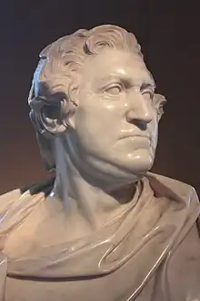 He shared his father's antiquarian tastes (commissioning Andrew Fountaine to supervise the cataloguing of his father's collections), but expressed them through architecture rather than collecting. He is known to have designed seven buildings,[3] two of which are no longer standing, these are the Earl's own house, Pembroke House, Whitehall of 1717, demolished 1756-7 and Wimbledon House 1732–3, Surrey for the Duchess of Marlborough, burnt down in 1785. Opinions of his talents in that area were mixed – Horace Walpole stated that "no man had a purer taste in building"[4] but Sarah, Duchess of Marlborough wrote that the Earl's talent was little more than to "imitate ill whatever was useless" in Inigo Jones and Palladio's buildings[5] Although he designed the Column of Victory at Blenheim Palace erect 1727–30[6] for the Duchess of Marlborough as a memorial to her late husband. As one of the "architect earls", he collaborated with Roger Morris to design Marble Hill House (1724–29), the White Lodge, Richmond (1727–28),[7] and the Palladian Bridge over the little River Nadder at Wilton House (1736/7). He also designed the water tower at Houghton Hall (c.1730) in the form of a garden temple, with a pedimented portico raised on a high rusticated base.