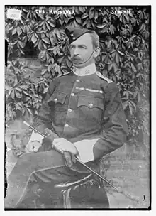 He spent his early life in Tralee in Ireland, where he and his siblings received their education from governesses and tutors.[2] Kitchener joined the British Army in 1866 and was commissioned into the 46th (South Devonshire) Regiment of Foot, before joining the newly created Duke of Cornwall's Light Infantry when it was founded in 1881.[2] During the Franco-Prussian War of 1870–71, he served alongside his brother in France.[3] He served as garrison instructor at the Curragh Camp in Ireland from July 1876 until July 1878 and was appointed the instructor in military topography at the Royal Military College in 1879, a post he held until August 1886.[2]