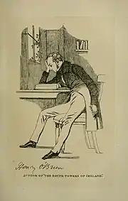 Henry O'Brien was the son of an aristocratic family from the west of Ireland. At an early age he studied Latin and Greek and took an interest in ancient Greek literature. Later he obtained a degree in classics at Trinity College Dublin.[1] In 1833 O'Brien published an essay in the Transactions of the Royal Irish Academy entitled "On the Origin and Use of the Round Towers of Ireland" which won a second place reward of £20.[2][3] Henry O'Brien thought however that he should have won first place and in a lengthy preface to his published essay in book form entitled The Round Towers of Ireland, or the Mysteries of Freemasonry, of Sabaism, and of Buddhism (1834) attacked archaeologist George Petrie who won the £50 first place reward.[4]