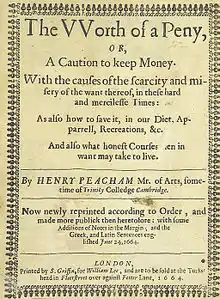 Henry Peacham (1546–1634), sometimes called Henry Peacham the Elder, was an English curate, best known for his treatise on rhetoric entitled The Garden of Eloquence, first published in 1577. He lived at Leverton-in-Holland, in Lincolnshire, and was the father of Henry Peacham the Younger, who also became an author.[1]