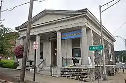 Herkimer County Trust Company Building is a historic bank building located at Little Falls, New York in Herkimer County, New York. It was built in 1833 and is a three-by-two-bay rectangular structure built of cut stone and broken range masonry. It features a portico supported by four Ionic order stone columns and gable roof in the Greek Revival style. It housed the Herkimer County Bank/Herkimer County Trust Company until 1917,[2] and now houses the local historical society.
