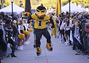 ![]() Herky the Hawk performing at the Beat State Pep Rally in 2014. | |