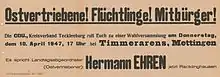Announcement poster of the CDU Tecklenburg for an election meeting with Hermann Ehrens on the occasion of the Landtag election in North Rhine-Westphalia 1947