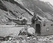 Hermann Geiger (27 October 1914 - 26 August 1966) was a Swiss aviator and search and rescue pilot whose heroic actions gave him national hero status in Switzerland. Known as "The Glacier Pilot," he pioneered the art of landing his Piper PA-18 on glaciers in the Swiss Alps like no other. In over 600 rescue missions, he managed to land his specially modified aircraft under extreme conditions on snow-covered glaciers. He often had to carry the injured people by himself in subzero temperatures and blizzard conditions to get them safely aboard his plane. Geiger once said, "To save lives, you must risk your own".[1] He died from injuries suffered in a fatal collision with a glider at the age of 52.[2] In aviation history, Geiger is the first man to successfully land on a glacier and one of the first mountain rescuers.[3][4]