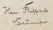 - ↑ Civilstand der Oberbürgermeisterei Düsseldorf, 4 July 1873: Den 3. Carl Maria Hermann, S. d. Baumeister Johann Hermann Riffart, in Düsseldorfer Volksblatt, Nr. 155, vom 5 July 1873