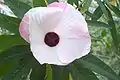 Hibiscus heterophyllus, commonly known as native rosella or toilet paper bush,[2] is a flowering plant in the family Malvaceae. It a shrub or small tree with white, pale pink or yellow flowers with a dark red centre and grows in New South Wales and Queensland.