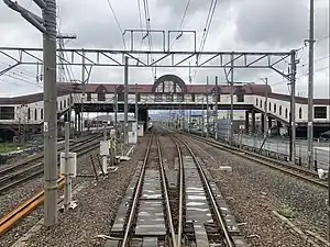Higashi-Aomori Station as seen from an Aomori-bound train