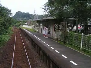 The station has a single side platform, with a small weather shelter built adjacent to the platform. The station is unattended.
